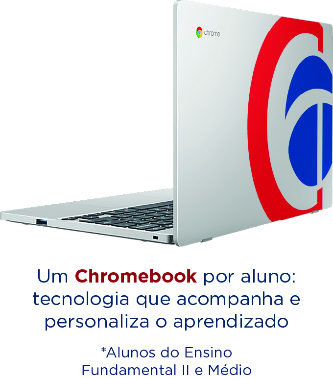 Cada aluno conta com um Chromebook individual, além do acesso a uma plataforma digital interativa e a ferramentas que utilizam inteligência artificial para criar trilhas personalizadas de estudo — tudo alinhado à Base Nacional Comum Curricular (BNCC).